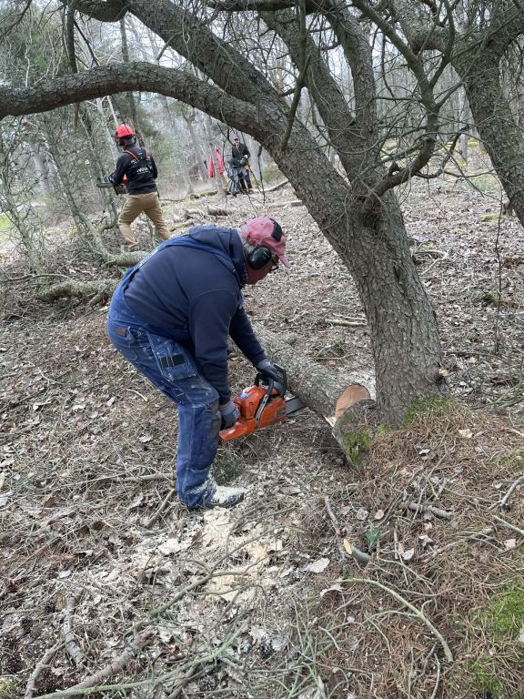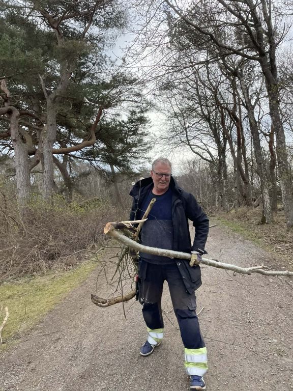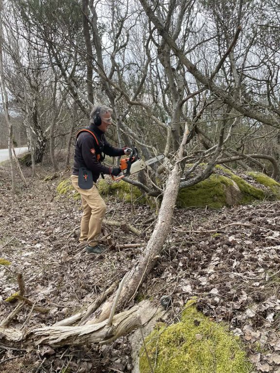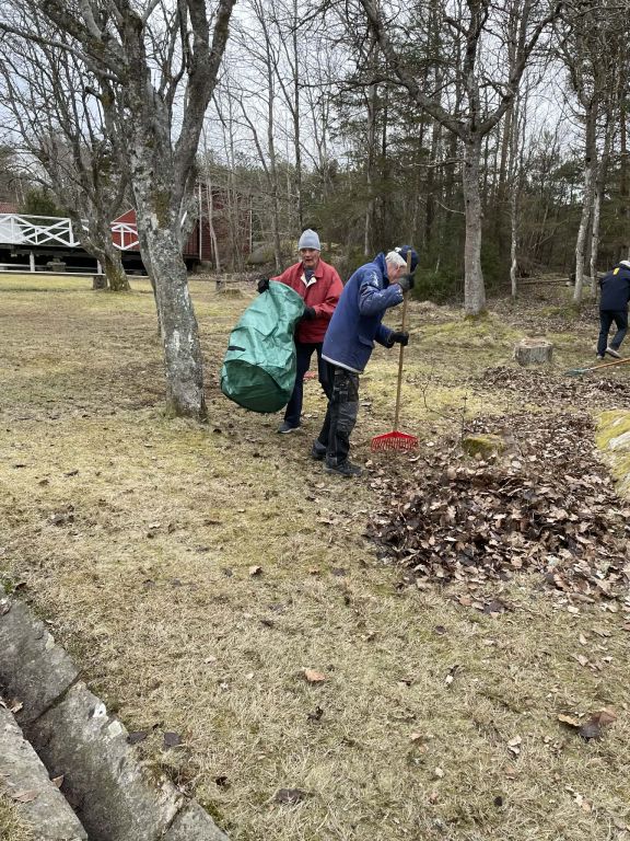 Vi var 20 personer som på tisdagen samlades och under trivsamma former hjälptes åt att fälla träd, samla ihop grenar och ris för att på plats elda upp det. Dessutom hann vi med att kratta och forsla bort en massa löv.