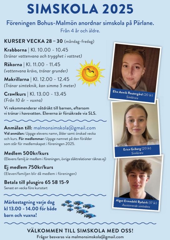Passa på att anmäla nu (malmonsimskola@gmail.com ) så är chansen större att det finns plats i önskad grupp och vecka.